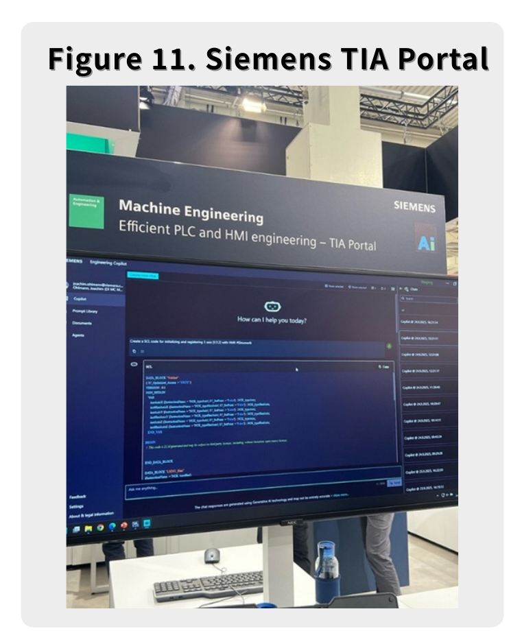 Siemens TIA Portal Copilot: Allows PLC programmers to describe logic in natural language; the AI then generates SCL (Structured Control Language) code.