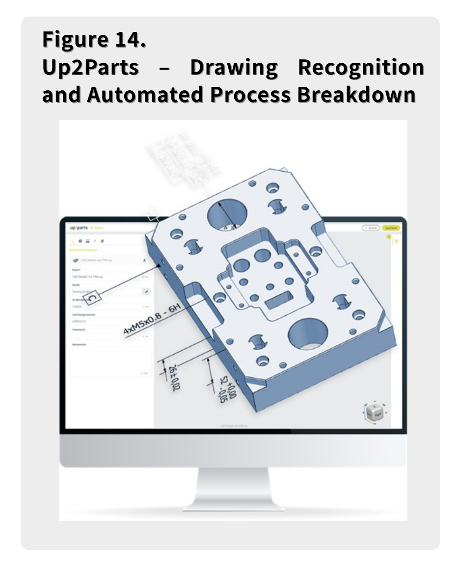 Up2Parts CAM: Showcased automated project generation, recognizing features and tolerances from CAD files to decompose processing steps and estimate costs automatically.
