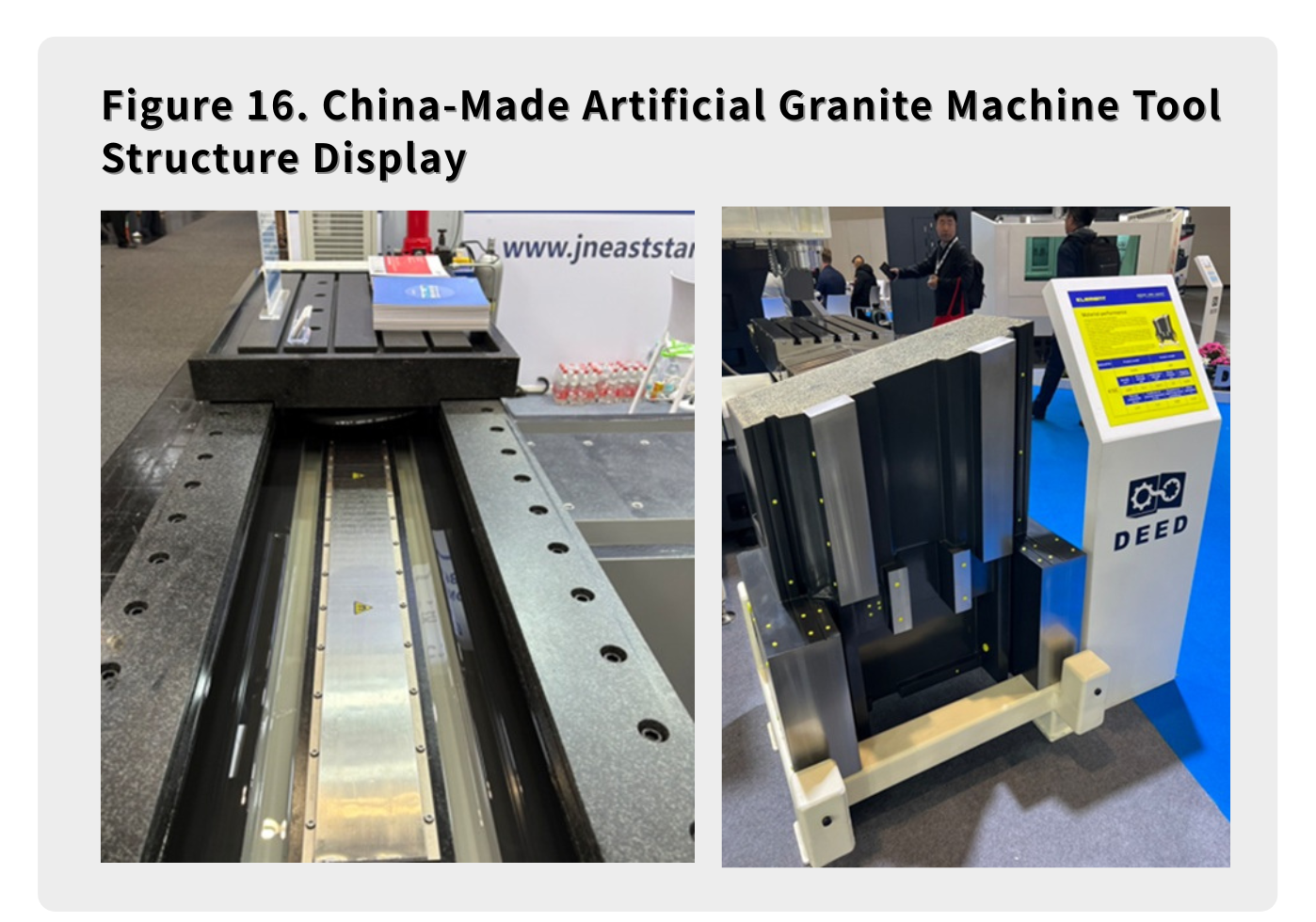 To achieve high precision and low-carbon manufacturing, manufacturers are moving beyond traditional cast iron. Mineral Casting and Ultra-High Performance Concrete (UHPC) structures were prominent.