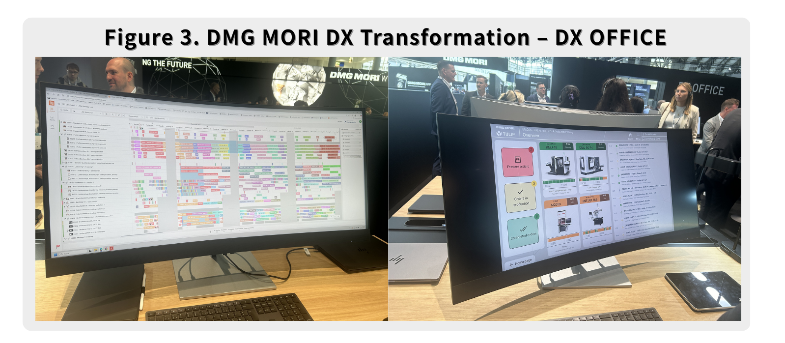 All scheduling is managed via DMG MORI’s DX Office, a digital process chain spanning from design to finished part. This ecosystem integrates software for MES & GenAI, NC Simulation, Digital Twins, and Tool Management. Notably, their GenAI provides real-time updates on order progress and equipment utilization.
