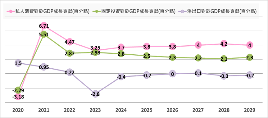 [Figure 2: GDP Expenditure Contribution to Growth, 2020–2029]
