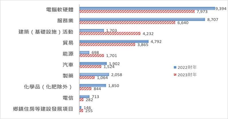 Note: India's fiscal year runs from April of the current year to March of the next year (e.g., April 2023 to March 2024 is FY 2023); Ranking based on FY 2023 values. Source: India DPIIT; Compiled by IEK Consulting, ITRI (03/2025)
