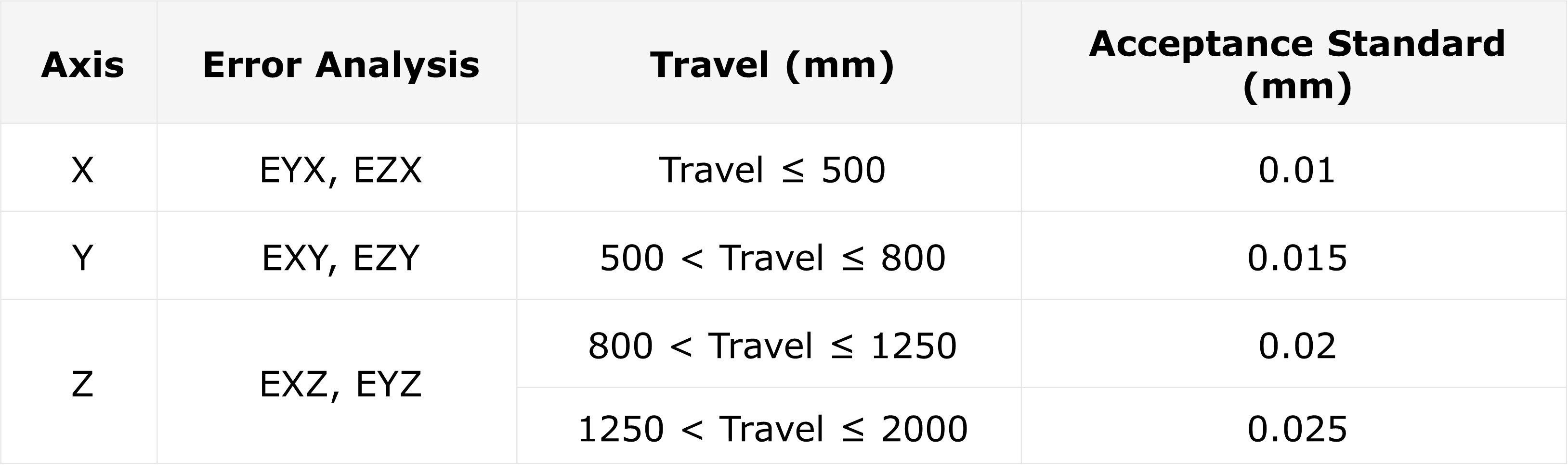- Horizontal straightness, Vertical straightness, Positioning accuracy