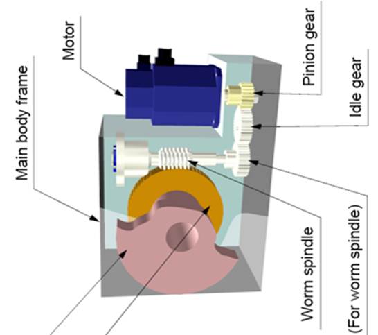 Transmission uses a dual-lead worm gear for high strength, efficiency, and adjustable backlash.