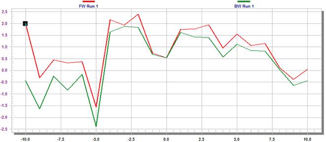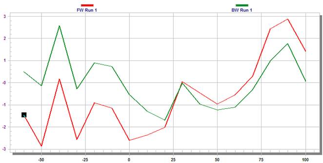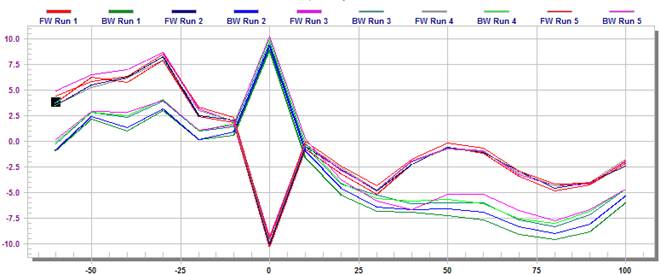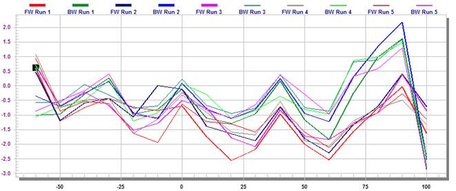 Figure 13: Encoder OFF – Five-pass positioning accuracy after compensation |