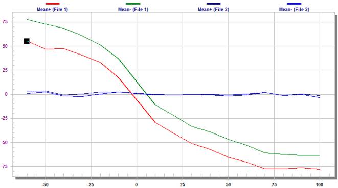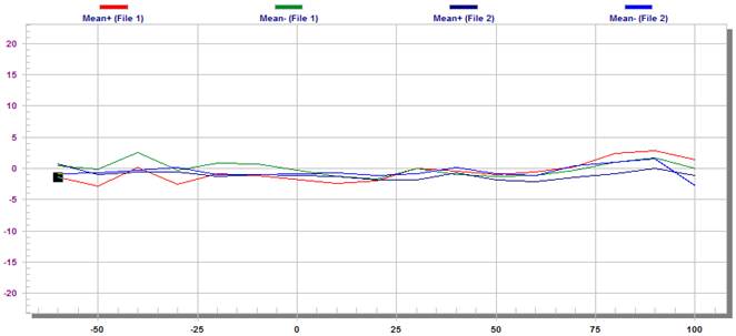 Figure 16: Comparison of encoder ON vs OFF with 1° incremental measurement |