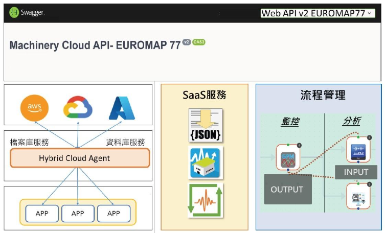 By leveraging the Edge-Cloud Engine technology provided by the Smart Machinery Cloud Standard RUNTIME, the reach of applications developed by Taiwanese developers with domain knowledge can be expanded, making it easier to overcome the barriers of proprietary systems. This offers more diverse choices and rapid application adoption for more Taiwanese manufacturing plants and end-users, completing digital transformation. Standard communication also enables companies to quickly utilize applications and flexibly apply them to industry needs, rapidly expanding the industry's benefits and scale in target markets, and elevating the system to an internationally competitive standard version. Furthermore, the common application software development tools provided within the Standard RUNTIME environment assist the machinery industry in possessing independent cloud service technology, guiding companies to develop application services, and transforming the industry into a provider of manufacturing, system integration, and software service TURNKEY solutions.