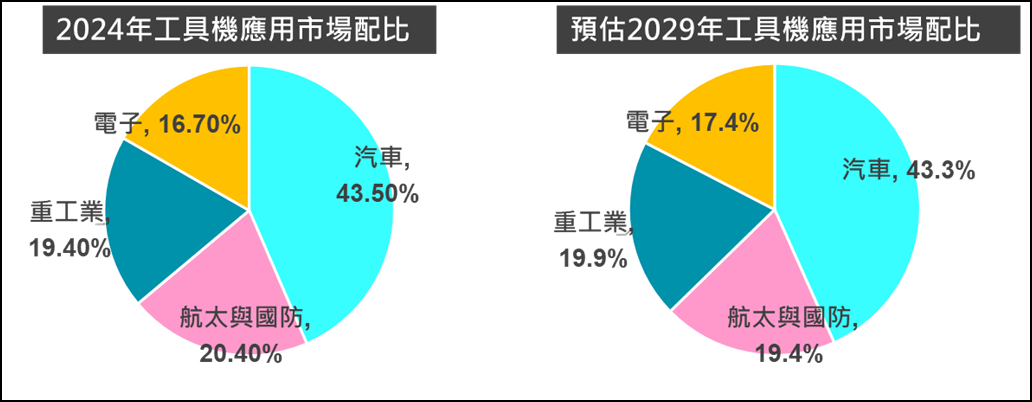 預估2024至2029年,電子產品領域的複合年增長率為12.5%。然而,航空航太和國防部門成長最慢,預估複合年增長率為10.5%。而金屬切削工具屬於電子行業在精密製造過程中的所需設備,在電子製造領域中至關重要。金屬成型工具則是在電子元件的成型和鑄造中發揮著至關重要的作用,而刀架和切削液等配件主要是提高金屬切削和成型製程的效率和效果。因此外資在電子業的投資預估也將拉抬工具機在電子領域上的應用,而印度電子製造業的成長則得益於大量投資,以及政府旨在促進國內生產的措施。智慧型手機、筆記型電腦和家用電器等消費性電子產品的需求不斷增長,進一步推動了對高階工具機的需求。