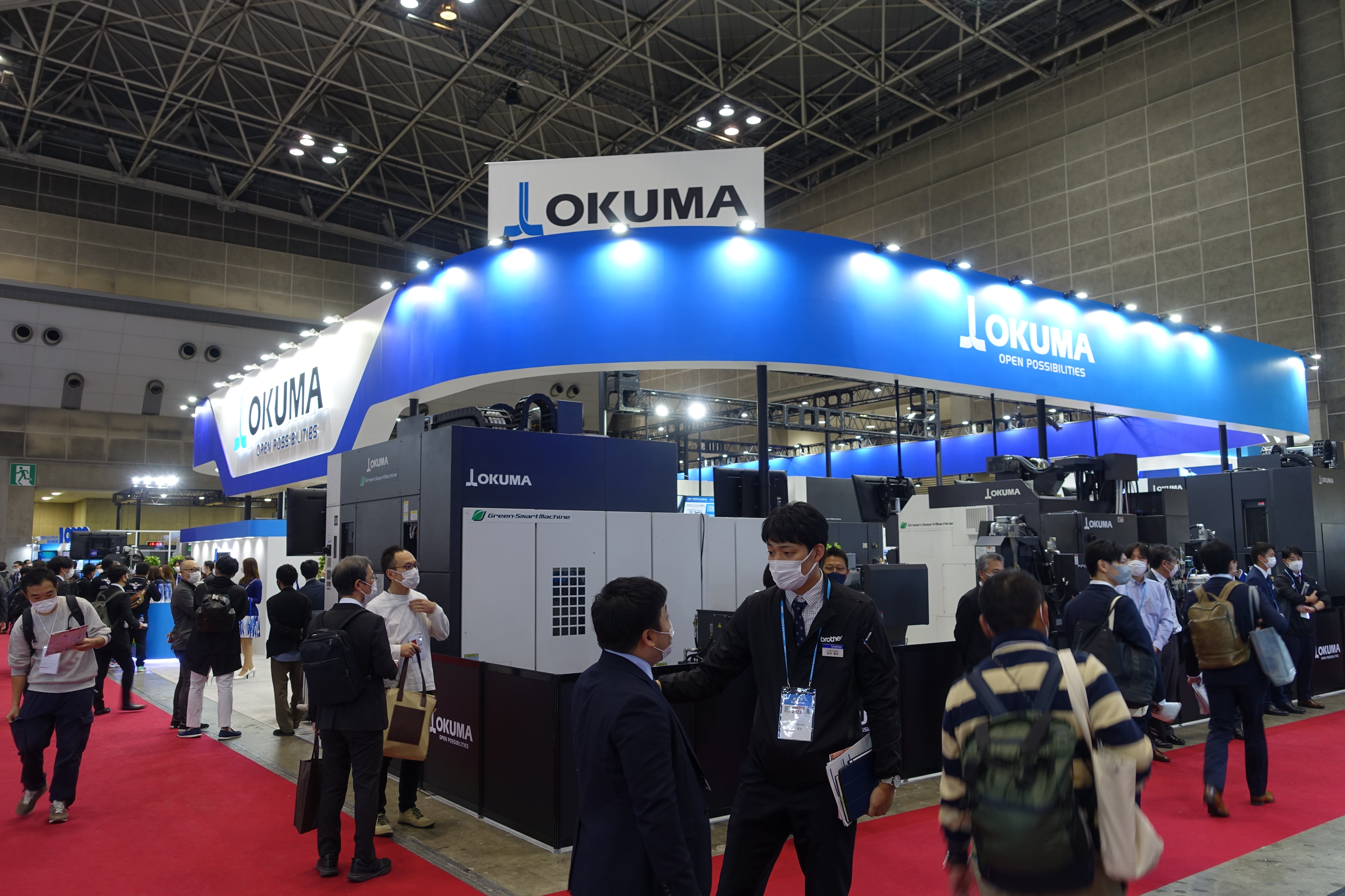 OKUMA攤位位在東六館,攤位主要分三大主題:「自動化」、「脱炭素化」和「數位化」。自動化部分從客戶需求分成四種類,並提出相應解決方案,幫助客戶漸進式達到自動化生產。脫炭素化部分,OKUMA推出「Green-Smart Machine」標章,當機台能自主實現「穩定尺寸精度」和「降低耗能」才可被貼上此一標章。數位化部分則有全新的OSP-P500控制器,搭載模擬加工的數位雙生功能,協助廠商進行加工模擬、確認加工順序、預估加工時間等。