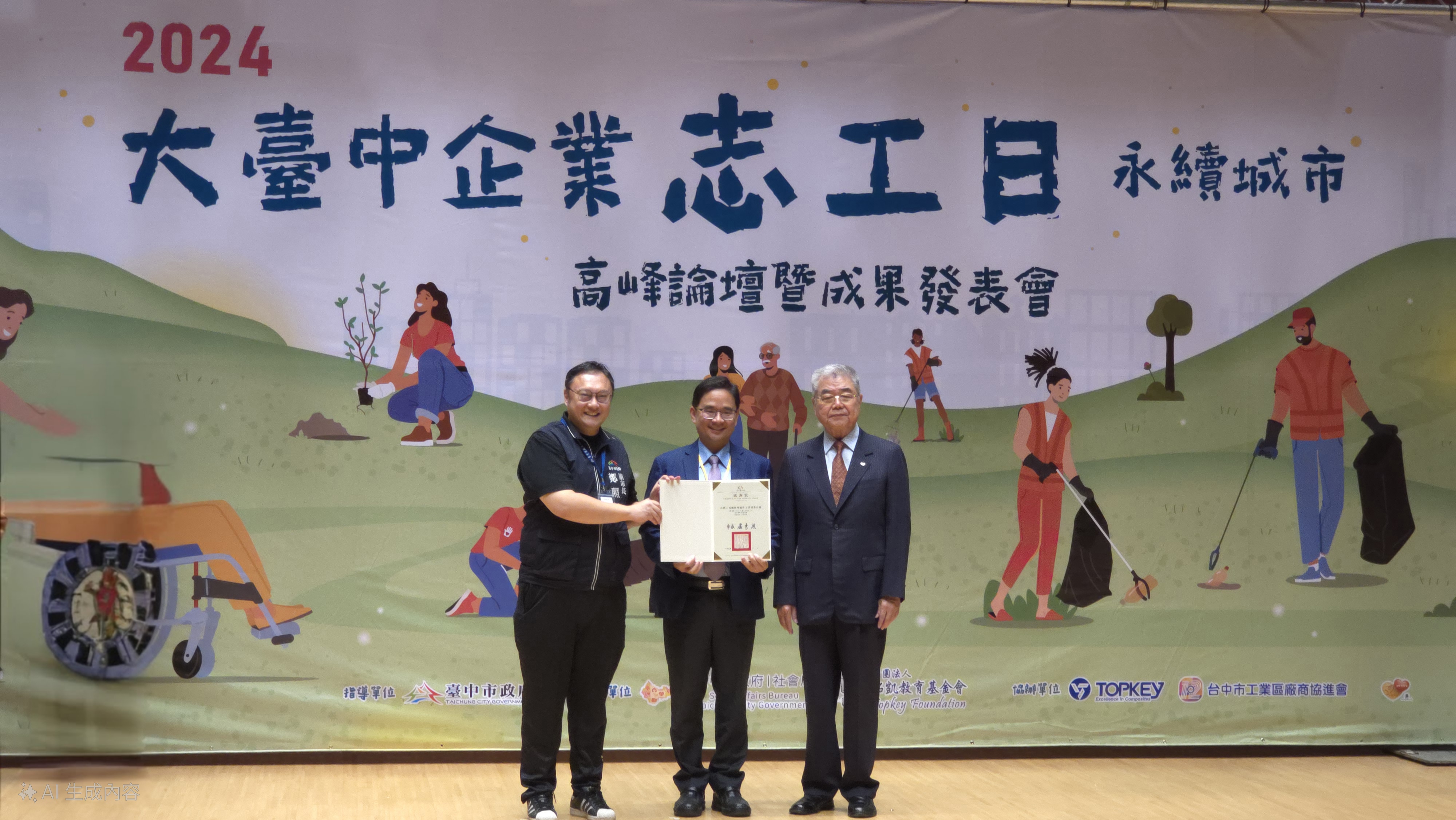 11/17周日上午臺中市政府集會堂熱鬧非凡,迎來了一年一度的大臺中企業志工日。這場盛會吸引百位以上的貴賓與企業志工伙伴,分享他們在公益領域的豐碩成果。邀請臺中市政府鄭照新副市長及拓凱基金會沈文振董事長擔任頒獎人,為臺中市積極參與公益、貢獻卓越的企業單位及志工們頒發獎項。鄭副市長致辭表示,企業志工不僅是企業的中堅力量,更是社會楷模,他們的無私奉獻和努力值得更多人的尊敬和學習。