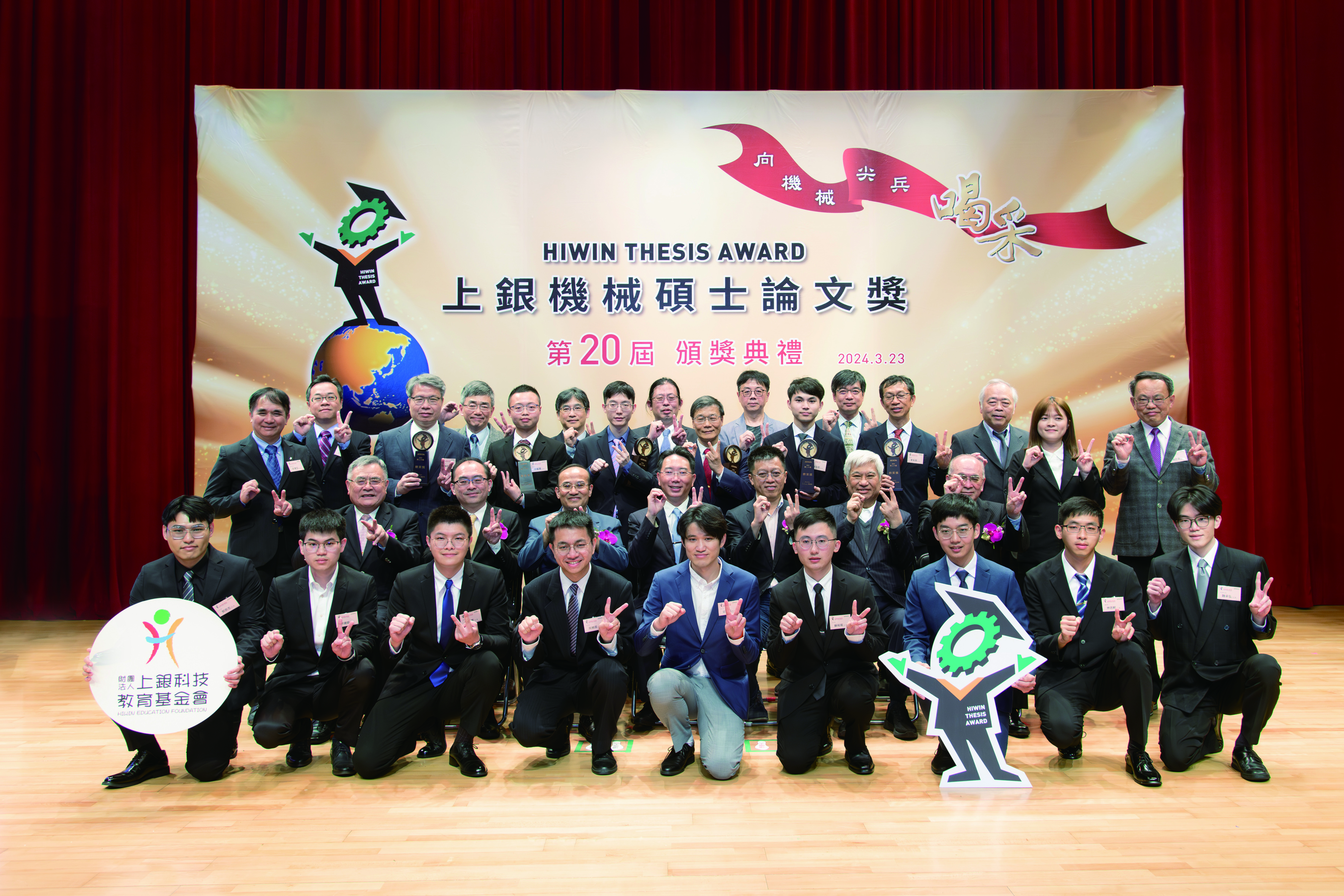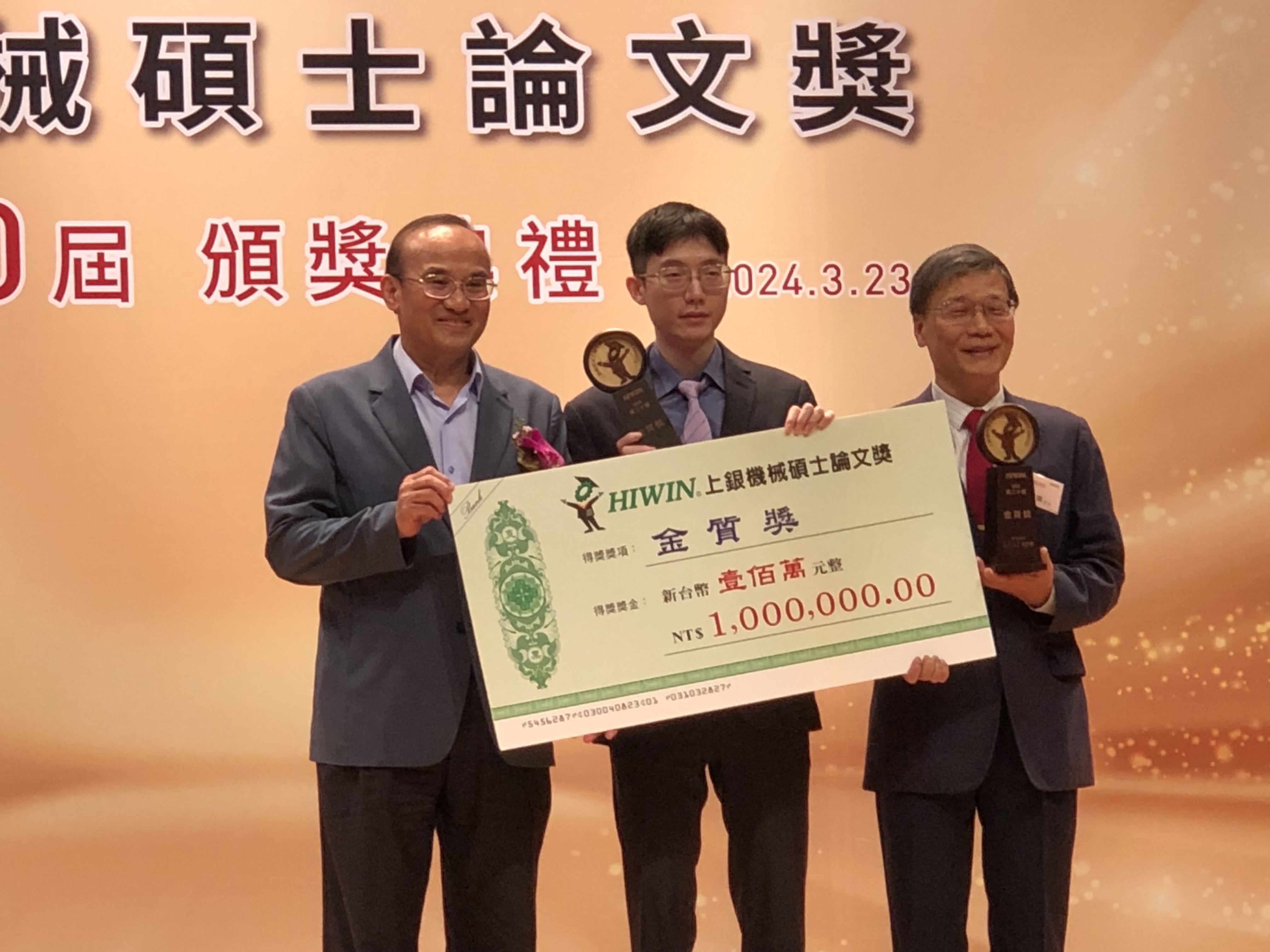 「上銀機械碩士論文獎」(Hiwin Thesis Award) 第20屆頒獎典禮於3月23日舉行,中央大學李韋廷同學與何正榮教授以「超快雷射薄石英晶圓微鑽孔研究」奪得金質獎、獎金100萬元。中央大學推薦5篇論文參選,有4篇進入決審,最終3篇獲獎,囊括金質獎、銅質獎及佳作獎,堪稱本屆最大贏家。