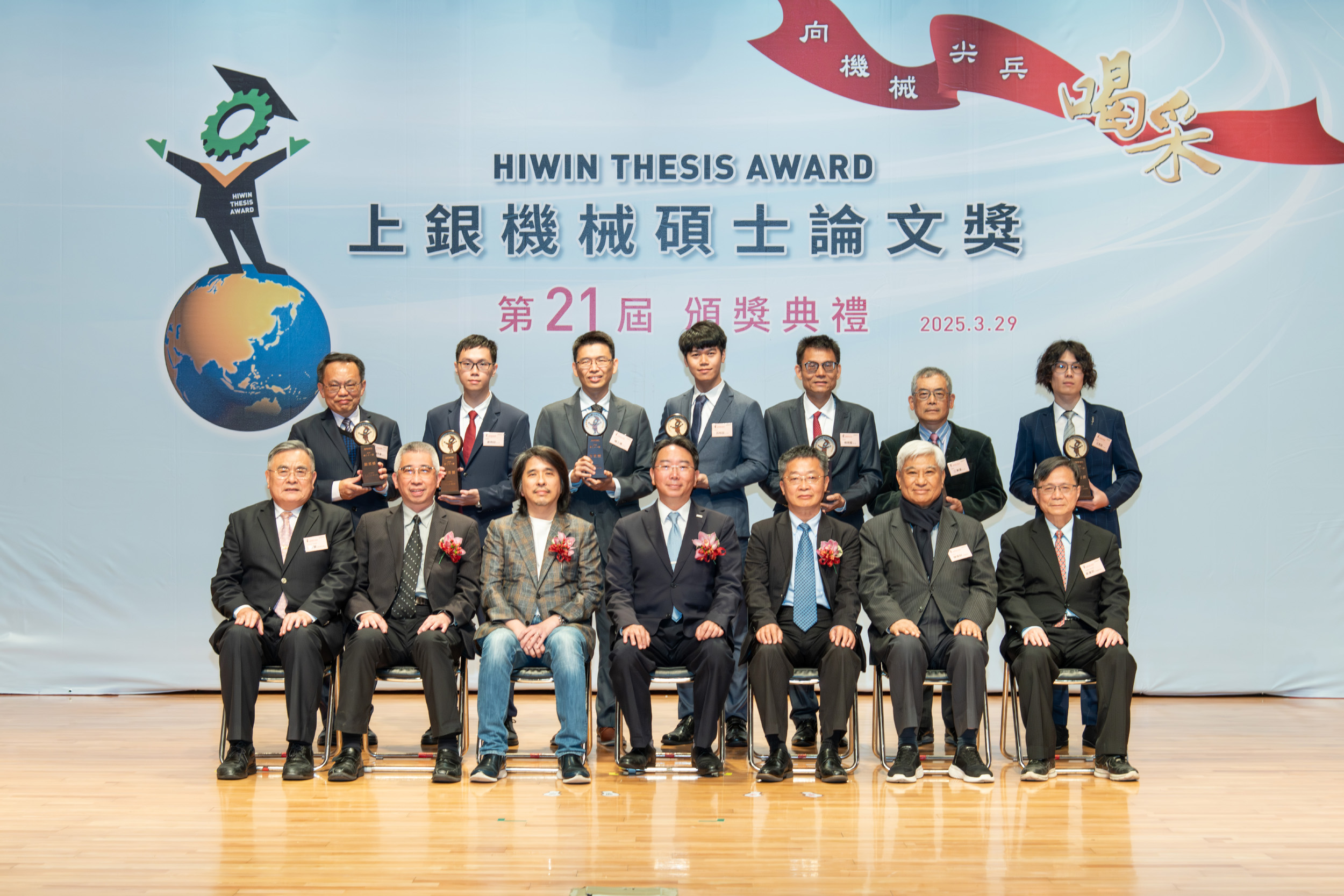 「上銀機械碩士論文獎」(Hiwin Thesis Award) 第21屆頒獎典禮於3月29日舉行,臺灣大學呂柏廷同學與楊士進教授以「印刷電路板繞組及冗餘位置感測器集成之軸向磁通馬達於衛星反應輪應用」勇奪金質獎、獎金100萬元。臺灣大學本屆推薦14篇論文參選,有8篇進入決審,最終有5篇獲獎,獎項囊括金質獎、銀質獎及佳作獎,堪稱本屆最大贏家。臺灣科技大學本屆推薦7篇論文參選,有4篇進入決審,4篇全部獲獎為第二贏家。