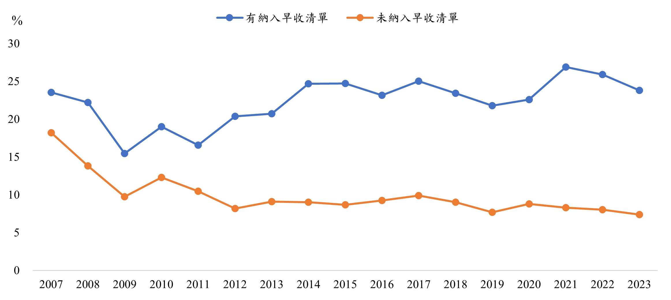2.未納入早收清單比重是指中國大陸進口未納入早收清單產品中,自臺灣進口的比重