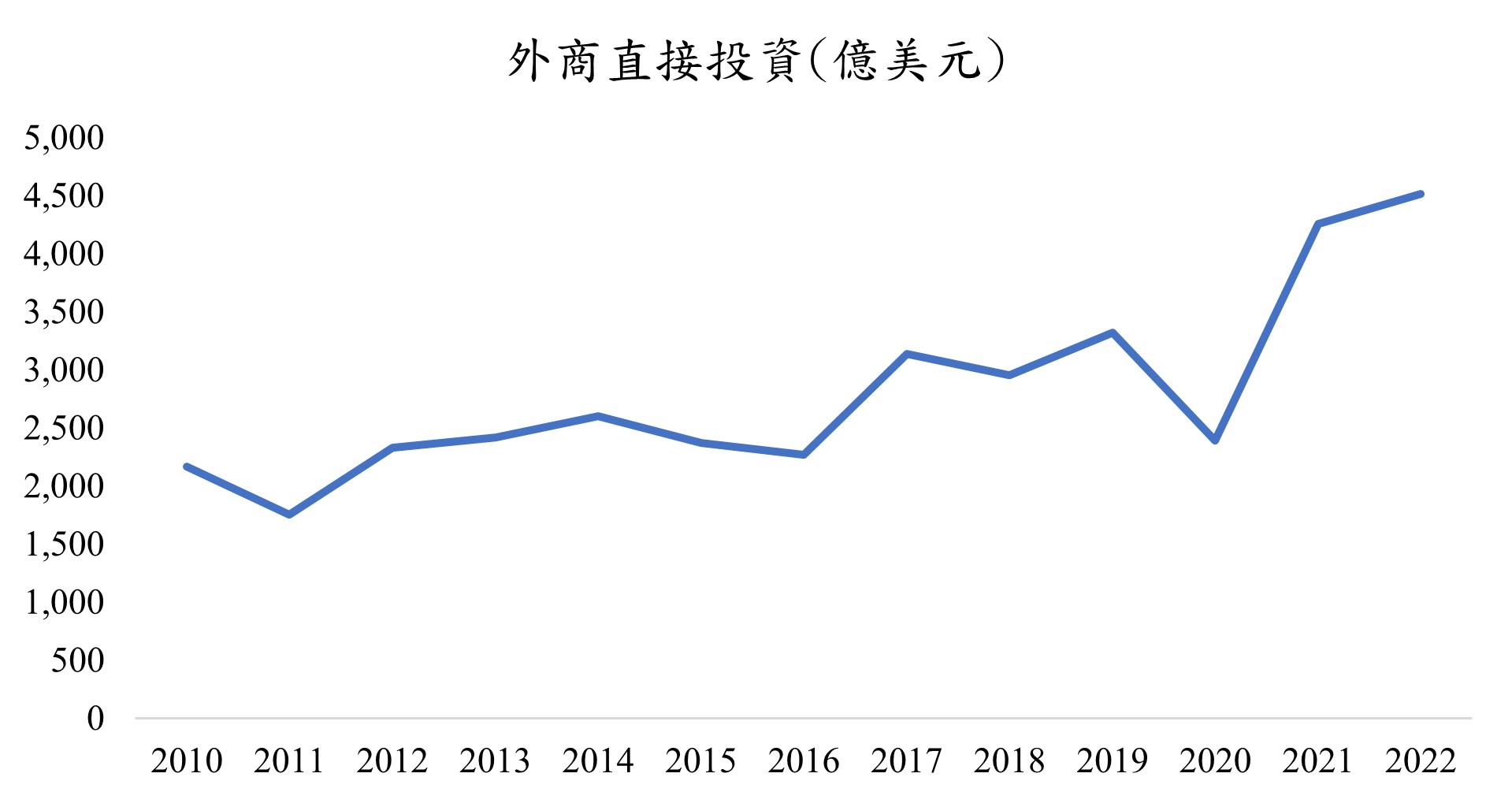 首先,由於中國大陸為我國工具機業者在海外設廠生產的主要地區,在面對此一困境下,國內業者可提高在中國大陸當地的產能作為因應,同時業者亦須加強其他市場的拓展以彌補在中國大陸市場訂單的流失,其中美國推動製造業回流以及東協市場為美中貿易戰後新的製造生產基地,皆是我國業者須積極布局的地區,尤其在2021年新冠肺炎疫情影響程度逐漸淡化後,外商在東協地區直接投資金額大幅攀升(詳見圖三),此有助於機械設備需求的提升,而2021年以來我國前往東協投資規模亦較以往明顯增加(詳見圖四),故業者可加強東協市場的拓展,尤其是當地的臺商。此外,電動車的快速發展,歐盟更是立法於2035年之後全面禁售燃油車,而美國實施降低通膨法(IRA),針對民眾購買美國政府採可的電動車款享有最高7,500美元的補貼,此讓墨西哥成為北美市場電動車新投資地區,因此我國工具機業者可加強歐盟和北美等市場的拓展。