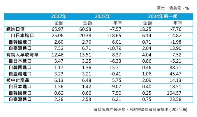 資料來源:中國大陸海關、台經院產經資料庫整理(2024.06)