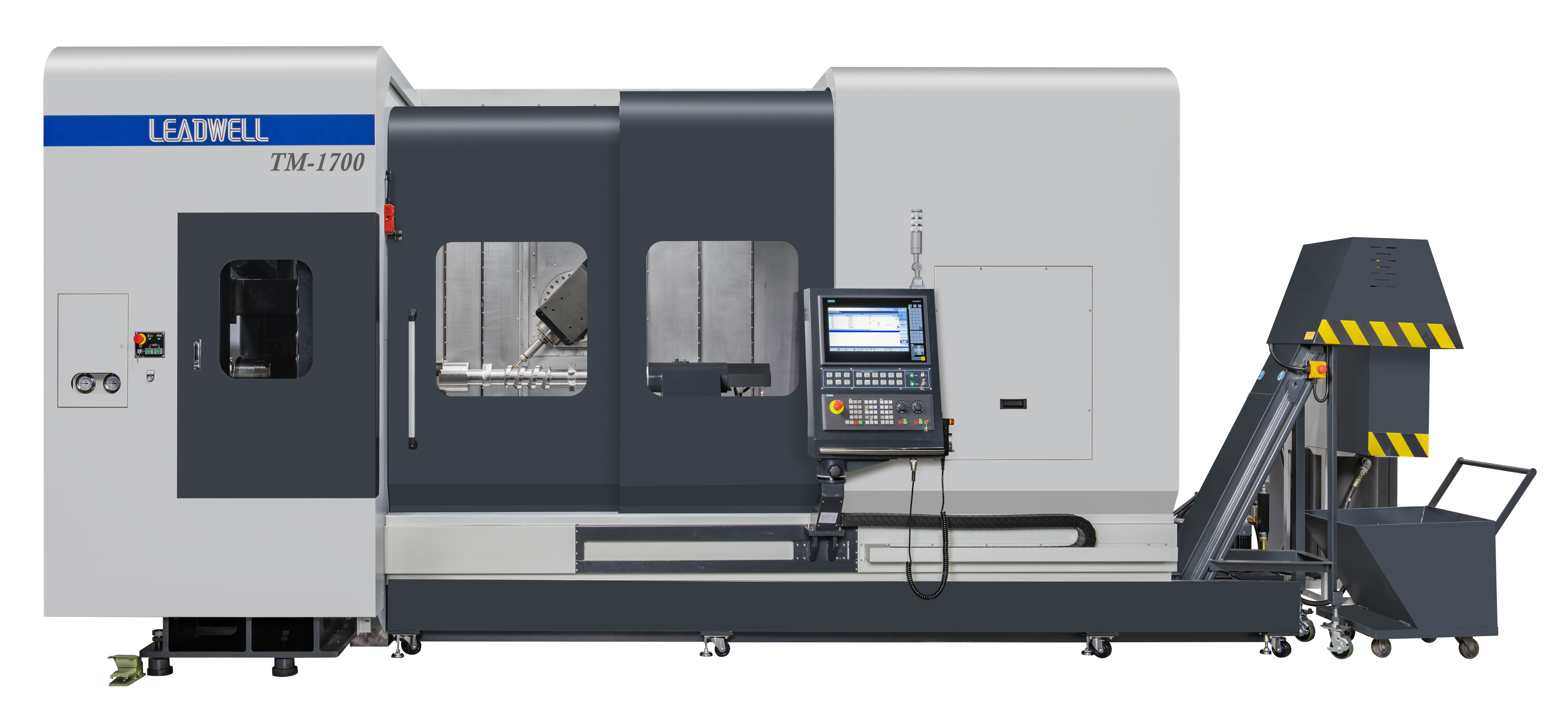 多功能車銑複合機,可做五軸同動加工、鑽、銑、斜孔、曲面、車削以及自我量測補正。B軸內建離合齒,咬合最大扭力為7200Nm,可配合重切削加工。電主軸轉速為12000rpm,最大扭力為102.7Nm,難削材也無所畏懼。下刀塔設計有12工位伺服驅動,支援高精度複雜加工。