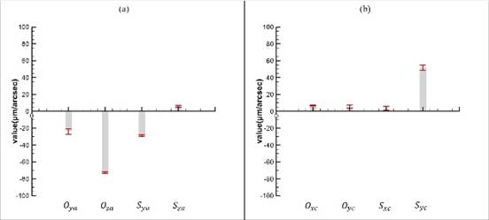 圖7 安裝誤差量測結果(a)A軸安裝誤差(b)C軸安裝誤差