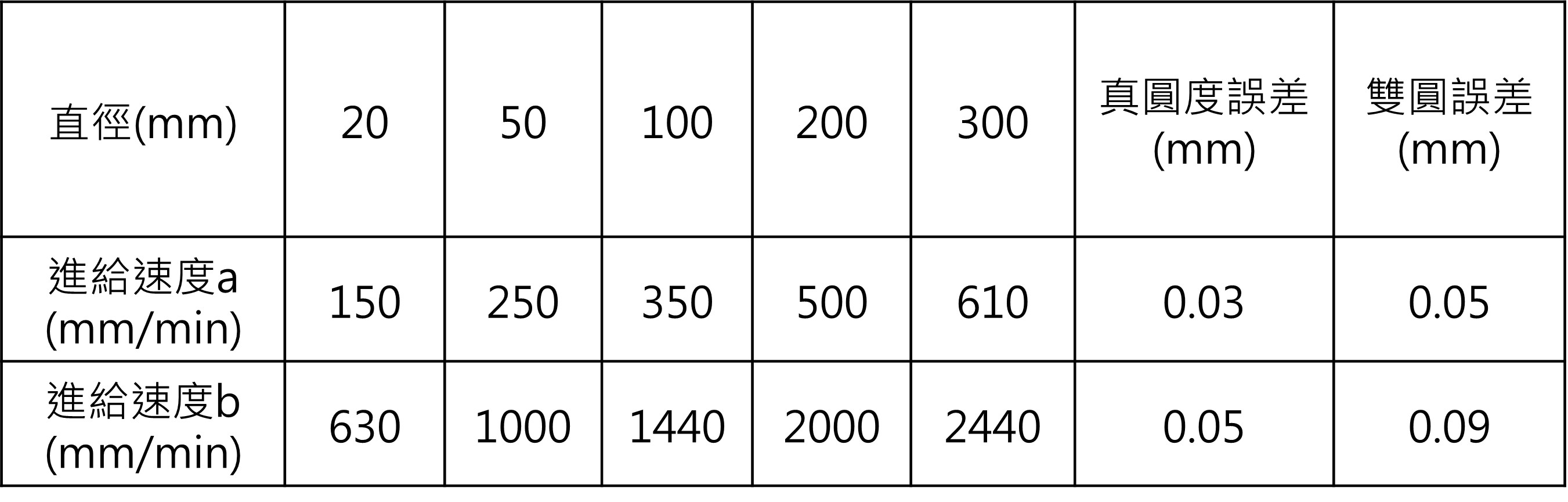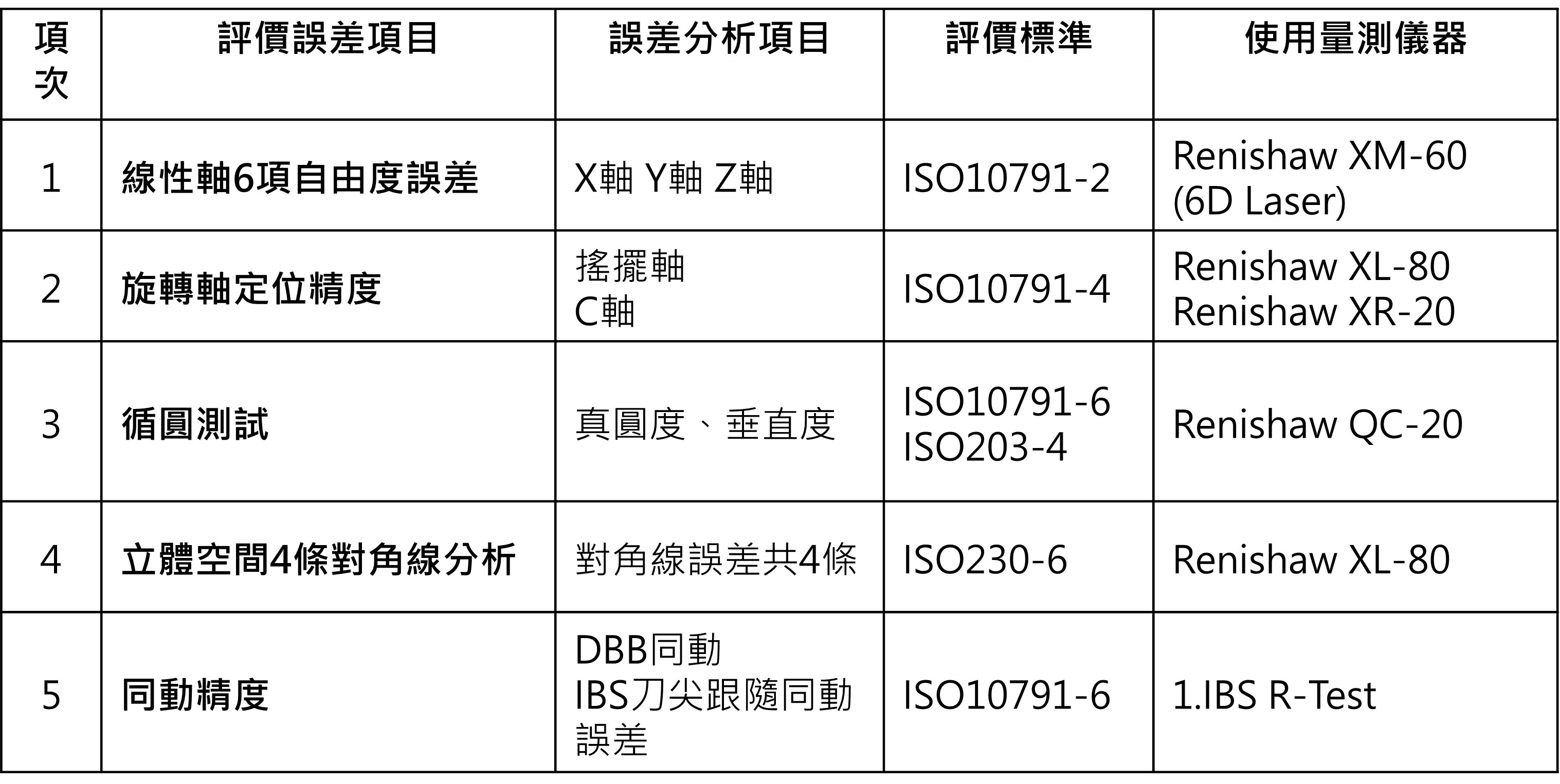 循圓測試使用Renishaw QC-20進行量測,相關測試條件與允收標準可參考ISO 10791-6,如表四所示,本次測試條件如下列所示: