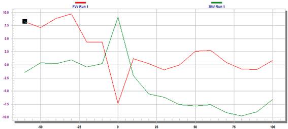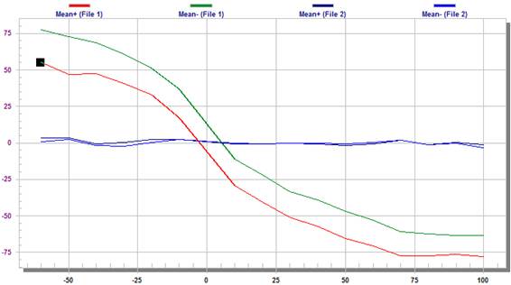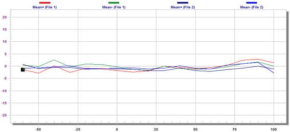 | 圖十五 開啟編碼器正負10度區間4arc-sec | 圖十六 開啟編碼器 vs 關閉編碼器1度1分割量測圖形比較 |