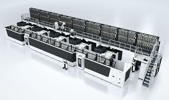 為解決勞動力短缺及提高工廠生產效率問題,當工具機整合完成單機複合式加工,工具機廠就開始利用刀庫及托盤系統擴充機台以達到單機可長時間自動化執行。Matsuura松浦機械將所有機台與不同類型托盤做搭配,針對不同工件大小機台邊都擴充一組適合的托盤交換倉,透過存儲大量托盤進行堆疊,使一台機器能夠處理大量工件,即使一台機器中也可完成長時間自動化,在節省空間的同時也提高生產率。