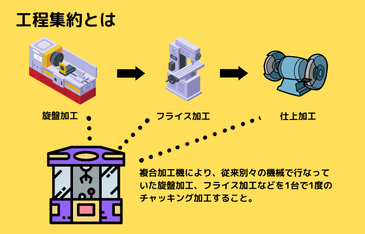工程集約是將生產過程中在不同機器上執行的多道工序合併為一道工序,在一商品的加工過程中會經過各種不同的傳統機械加工工法,從車削、銑削、鑽孔、滾齒、去毛邊、清潔切屑、精加工、研磨等,透過工程集約可以將這些製程合併在單一機台上,除此之外,工件精度量測、外觀檢查、甚至是新型態的加工工法等的整合,以達到提高產品精度、增加機器運行時間、長時間無人化、減少半成品管理、減少機台數量等優勢,下列將綜整幾項工程集約發展內容與大家分享。