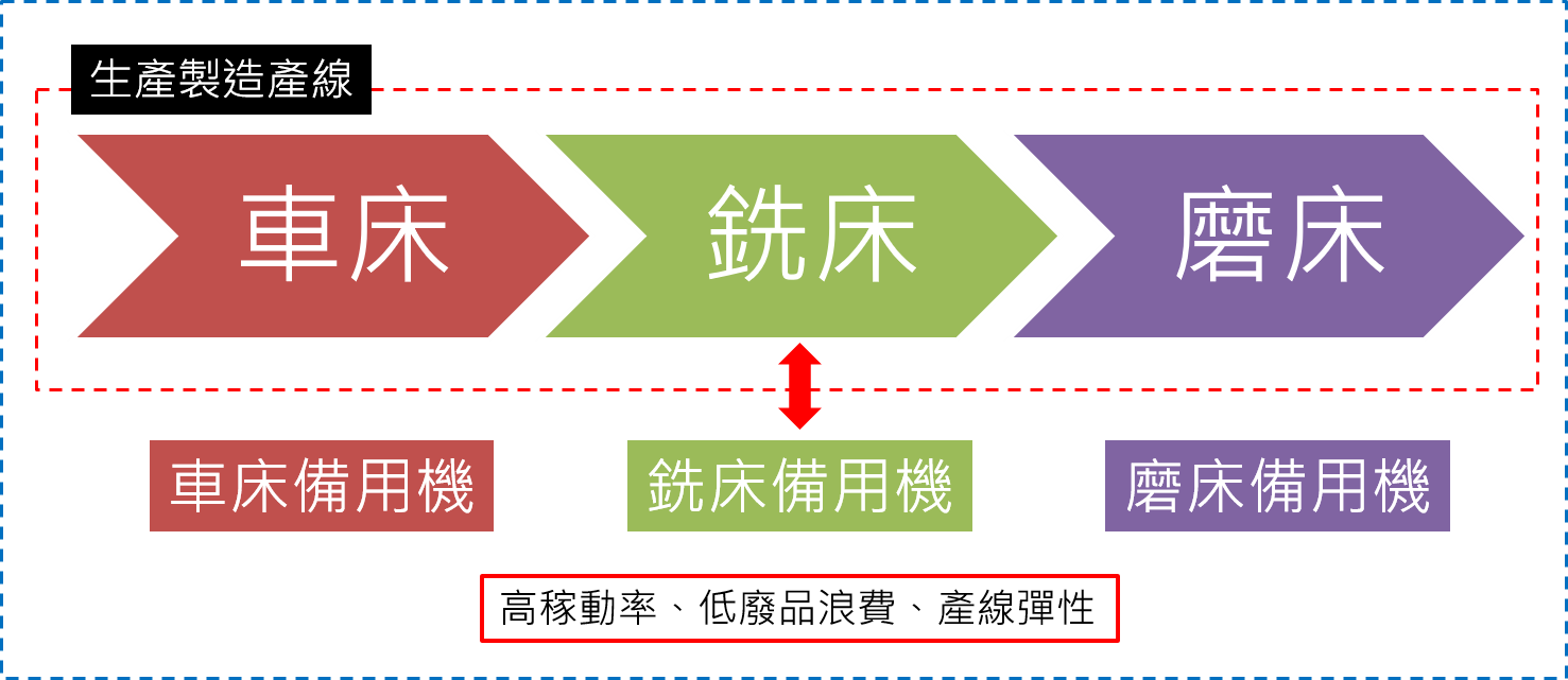 工具機的應用市場相當廣泛,各種產業皆有其足跡,當工具機加工工廠接單後,通常以人工或MES製造執行系統進行生產排程,簡單工件可由一台工具機切削完成,複雜工件就得需由多台工具機切削完成,故生產製造產線中工具機精度異常導致加工件精度不良,將會耗費時間及管理成本。生產製造產線每台工具機的狀態就相當地重要,故工廠可藉由工具機年度校正來達到生產順暢之目的,透過年度校正來預約維修、啟動備用機、降低不良率等,最終達到高稼動率、產線彈性、低廢品浪費等效益(如下圖1所示)。