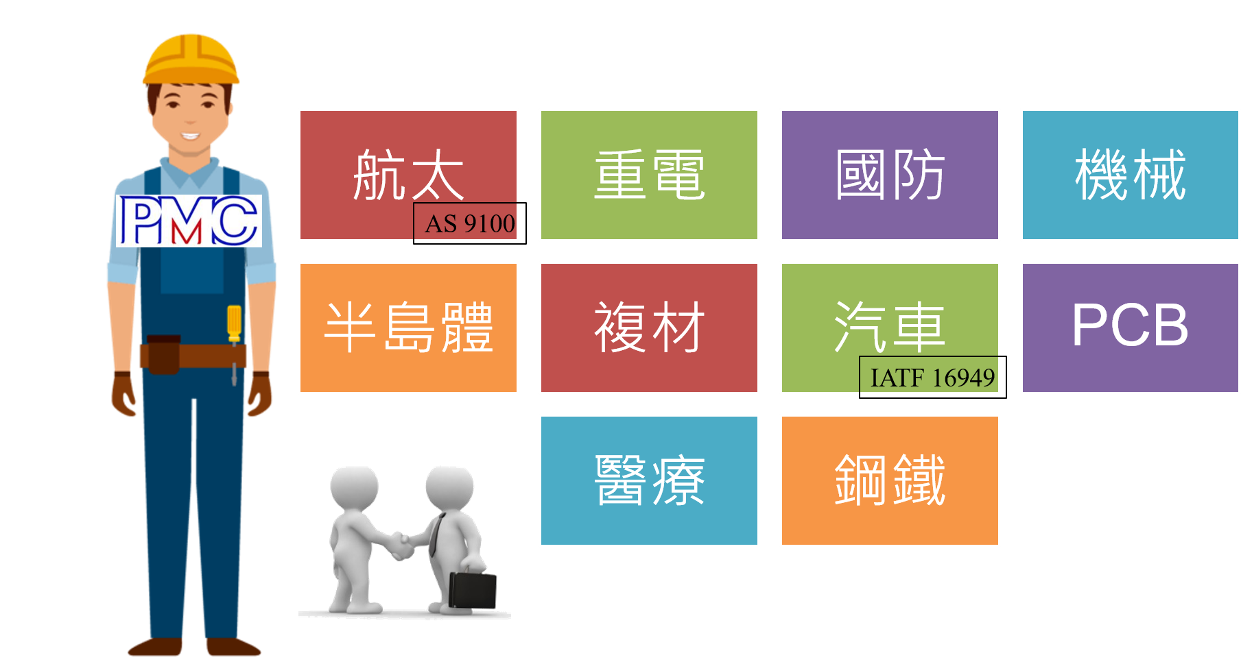 工具機應用市場相當廣泛,目前機械檢測部服務過的產業類別包括航太產業、重電產業、國防產業、機械產業、半導體產業、複材產業、汽車產業、PCB產業、醫療產業及鋼鐵產業等(如下圖2所示)。應用市場產業業者可透過年度校正來自我管理與追蹤品質,落實產業國際規範之品質管理系統,例如汽車產業IATF 16949、航太產業AS 9100等,逐步與世界接軌。新產業或新業者若有需求亦可向機械檢測部洽詢。
