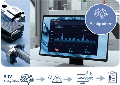 針對傳動部件部分,THK預兆檢知AI解決方案可監控如導軌、滾珠螺桿等部件的潤滑和破損狀態,透過數值化的方式(如:健康度分析報告),提供精確的狀態監控,並在異常發生時發送警報,協助用戶進行預防性維護。