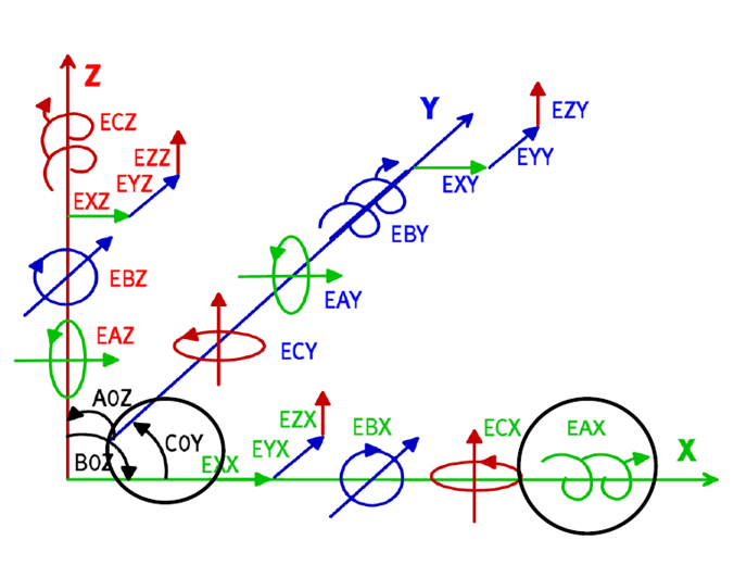依據ISO230-1標準,工具機21項自由度誤差定義如下圖所示: