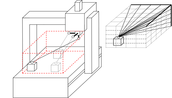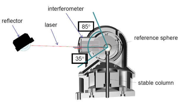 目前雷射追蹤儀(ETALON LASERTRACER-NG)為工具機量測體積誤差高精度的量測設備,其構造參考下圖: