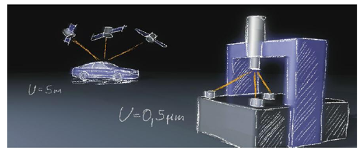 追蹤儀量測原理:將GPS量測原理運用在工具機,僅能量測出長度數據(1D Laser)。