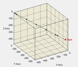 為驗證空間誤差補償的實際成效,本研究進一步透過空間對角線模擬,進行補償前後的精度比較分析。空間對角線模擬是評估整體空間精度的有效方法,因其涵蓋了設備三維運動的複雜路徑,特別能揭示系統在跨區域運動時所產生的綜合性誤差。在本次實驗中,雷射追蹤儀被用來量測設備在空間對角線方向上的實際位置變化,並與理論座標進行比對,以評估補償效果。