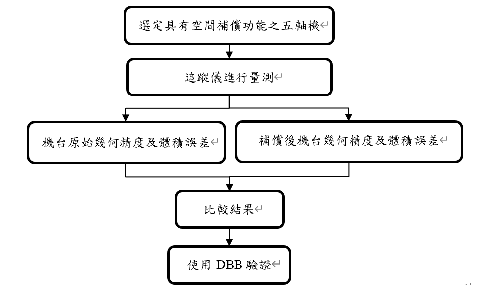 (4) 標準化與模組化誤差補償流程:建立標準作業流程與模組化架構,使補償技術能廣泛應用於不同機型與製造環境,提升技術移植性與產業應用價值。